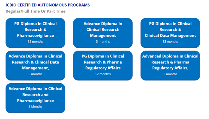 If you are looking for Clinical Research Courses or Clinical Data Management or Pharmacovigilance course any where in India, get trained and certified at your convenience from ICBio Enroll in our esteemed institutions without further delay!